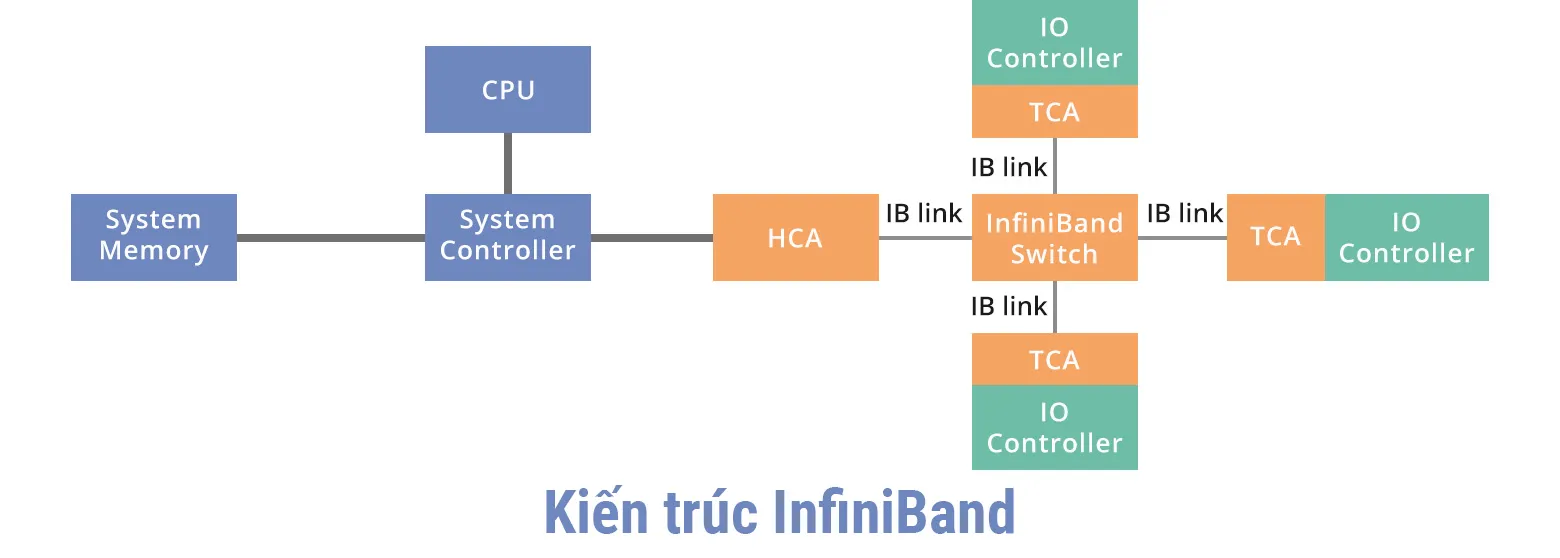 Hạ tầng của InfiniBand yêu cầu các thành phần chuyên dụng bao gồm card mạng InfiniBand (IB Network Card), switch InfiniBand (IB Switch), cáp InfiniBand (IB Cable) và các module quang tương ứng. Nhờ vào kiến trúc tối ưu hóa và khả năng mở rộng mạnh mẽ, mạng InfiniBand ngày càng được ứng dụng rộng rãi trong các hệ thống điện toán đám mây, trí tuệ nhân tạo và nghiên cứu khoa học.